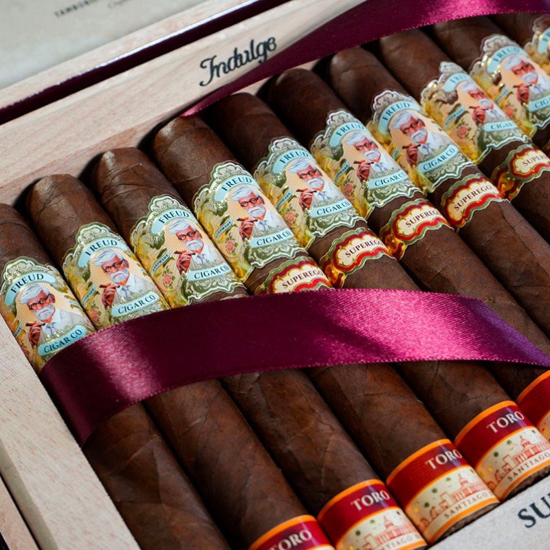 Freud Cigar Co. is a luxury brand named after one of history’s most renowned cigar smokers: Dr. Sigmund Freud. Founded by a team behind some of the industry’s most respected names, Freud brings together master blenders like Eladio Diaz and Wiber Ventura to craft innovative, small-batch cigars. The brand embodies artistry, intellect, and sensory exploration—each blend is a chapter in Freud’s philosophy of pleasure and reflection.