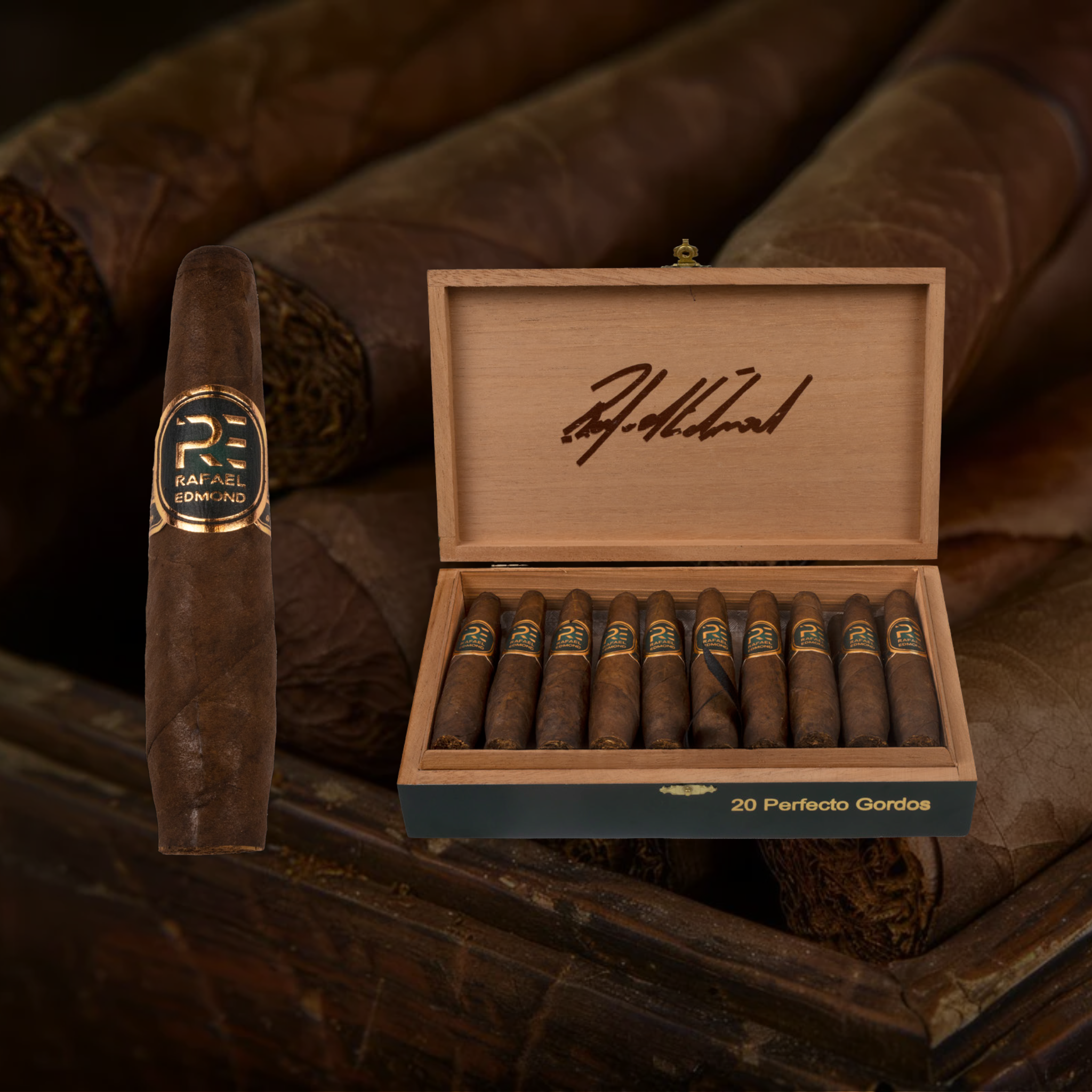 Rafael Edmond is a premium Dominican brand built on authenticity and experimentation. It merges classic Dominican Criollo and Corojo tobaccos with exotic leaves from Ecuador, Mexico, Nicaragua, and Peru. A hallmark of the brand is its rum-barrel fermentation, which elevates certain blends with depth and sweetness. Each cigar is crafted to be not just a smoke, but a story—a moment of elegance, strength, or reflection, depending on the vitola chosen.